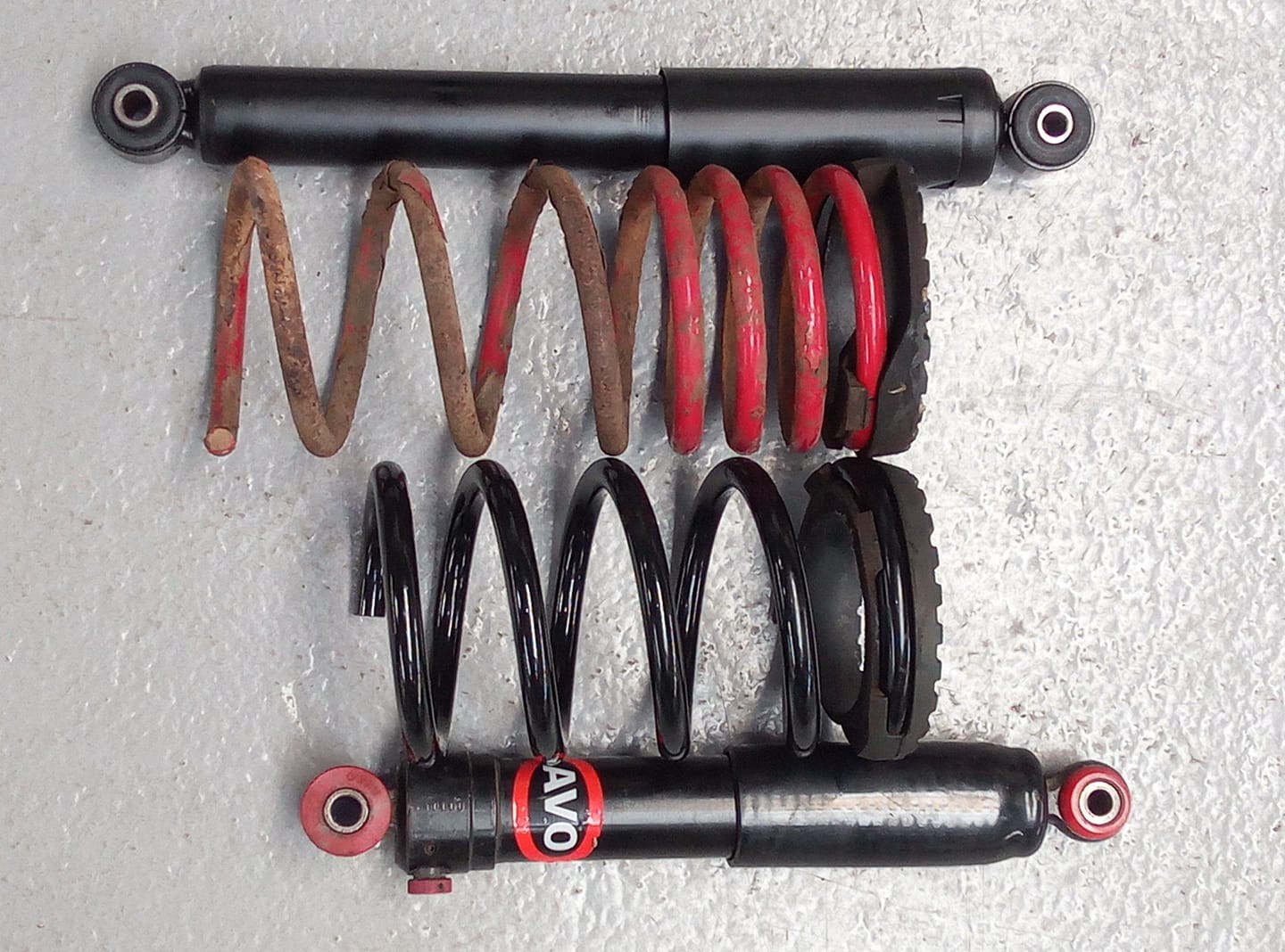 Above is standard Abarth Essessee rear springs/damper & below is the shorter kit we developed.